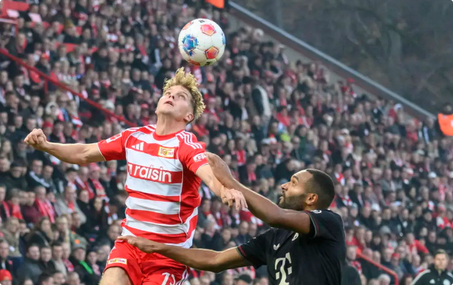 第83分钟,柏林联合定位球开出,凯恩禁区纵深位置头球失误,将皮球直接顶给对手,多克希跟进头球破门,柏林联合2-1拜仁!