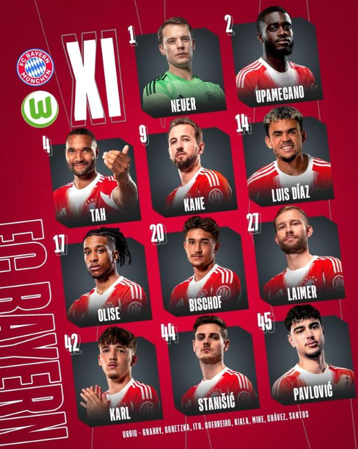 北京时间1月12日凌晨00:30,拜仁将迎来德甲第16轮主场对阵沃尔夫斯堡的比赛,目前,双方的首发阵容和替补名单已经公布,随后拜仁官方公布了球队的伤情信息。