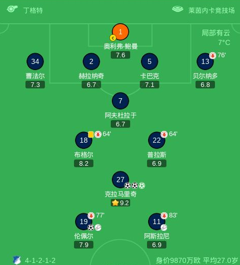 霍芬海姆5-1大胜门兴格拉德巴赫,克拉马里奇帽子戏法