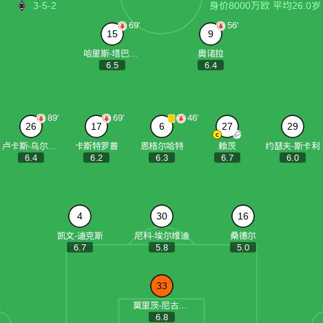 第69分钟,门兴格拉德巴赫球员赖茨助攻町野修斗打入一球。