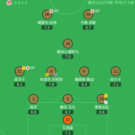 沃尔夫斯堡2-1圣保利,佩契诺维奇破门,埃里克森点射