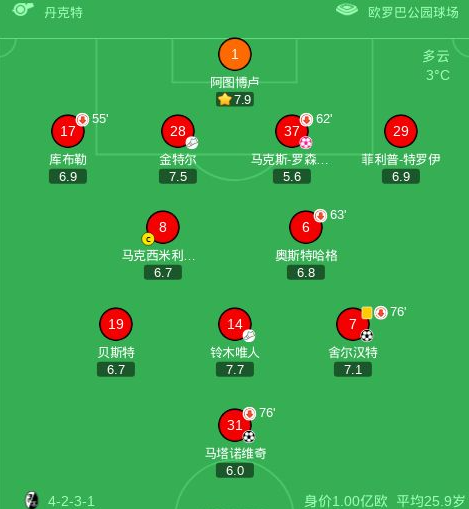 北京时间1月26日,德国足球顶级联赛第19轮,弗赖堡主场对阵科隆。马克斯-罗森费尔德不慎自摆乌龙,随后舍尔汉特接铃木唯人助攻破门,马塔诺维奇再接金特尔助攻建功。比赛期间,马塔诺维奇主罚点球未能命中。最终弗赖堡以2比1战胜科隆。