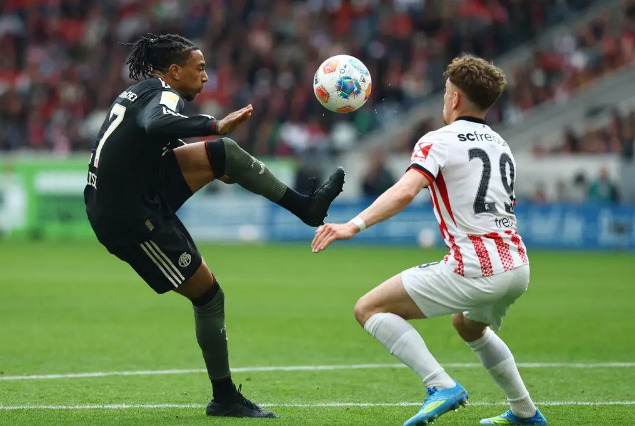 第46分钟,曼赞比接埃格斯泰因助攻破门,弗赖堡1-0拜仁。