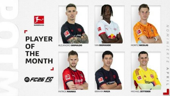 北京时间4月22日,德甲官方公布了4月最佳球员的候选名单,其中扬-迪奥曼德、格里马尔多、迈因卡、马扎、莫里茨-尼古拉斯、泽特尔在列。