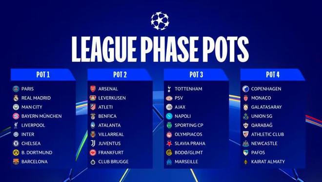 这是欧冠赛制改革后的第2个赛季,在全新的联赛阶段中,每支球队都将根据抽签从4个档位分别选出2个共计8个不同对手,进行4主4客共计8场比赛。