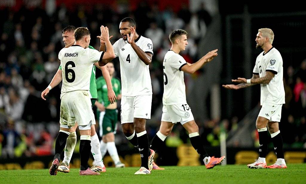 北京时间10月14日凌晨2点45分,2026世预赛欧洲区A组第四轮,德国前往客场对阵北爱尔兰。上半场比赛,沃尔特马德接劳姆助攻打进国家队处子球,半场德国1-0领先;下半场,双方未能改写比分,阿德耶米失单刀,最终德国在客场1-0战胜北爱尔兰,4轮过后以3胜1负积9分的战绩领跑。