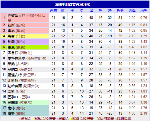 随着巴黎圣日耳曼爆大冷1-3,法甲最新积分榜出炉