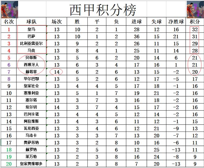 西甲最新积分战报 赫塔菲差马竞8分 皇马领先巴萨1分