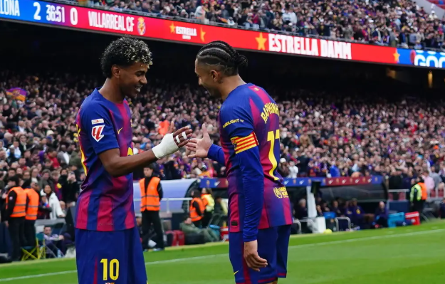 北京时间2月28日凌晨23:15分,西甲联赛第26轮,巴塞罗那主场对阵比利亚雷亚尔。上半场比赛,亚马尔梅开二度,费尔明送出两次助攻,巴萨暂时2-0领先黄潜;下半场,客队由盖耶打入一球缩小比分差距,随后亚马尔再入一球达成帽子戏法,莱万补时锦上添花,最终巴萨4-1战胜比利亚雷亚尔,先赛一场领先身后的皇马4分。