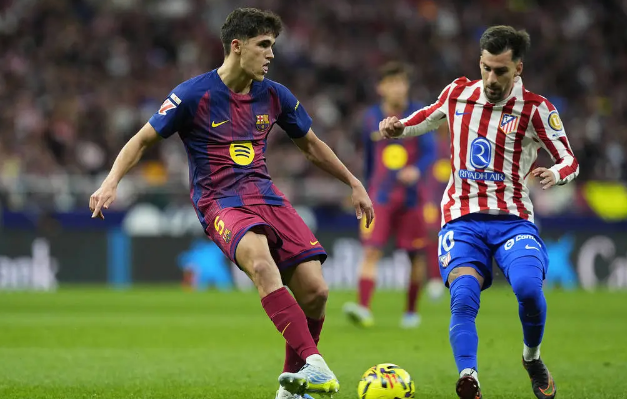 第30分钟,格列兹曼从身后放倒佩德里,裁判给了口头警告。第35分钟,奥尔莫做球给费尔明,后者直塞禁区,亚马尔前插面对穆索挑射,皮球击中立柱弹出。