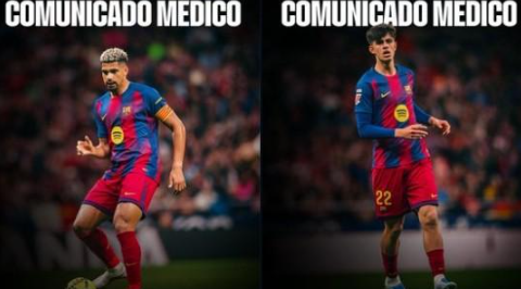 巴萨:阿劳霍可以出战欧冠对马竞,贝尔纳尔左脚踝扭伤