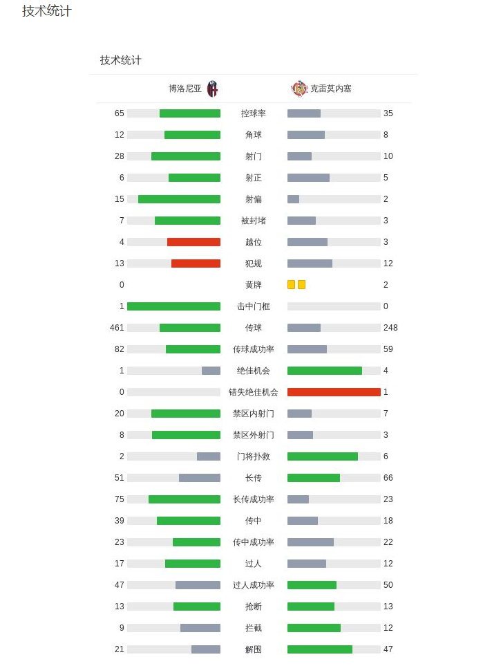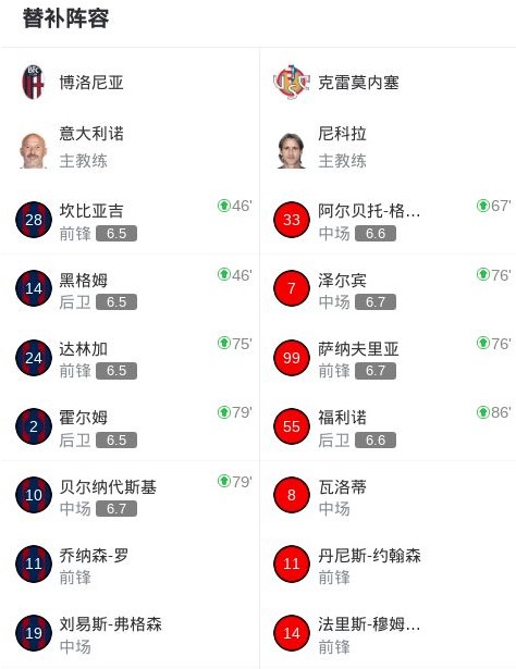 意甲-克雷莫内塞3-1博洛尼亚,瓦尔迪梅开二度