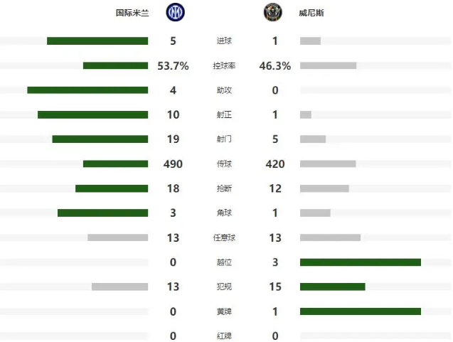 本场比赛没有全主力出战的国际米兰,仍然在梅阿查球场火力全开,靠着迪乌夫、埃斯波西托、博尼的进球,以及小图拉姆的双响,主场5-1大胜威尼斯,昂首晋级意大利杯八强。