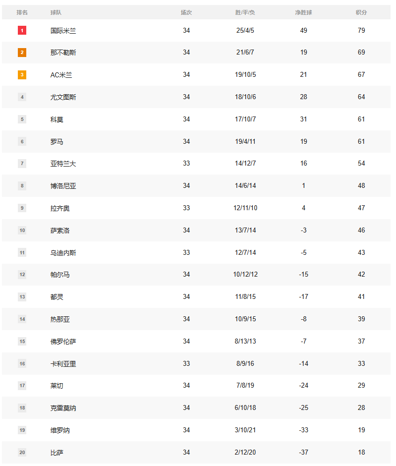 意甲最新积分:佛罗伦萨主场0-0战平高排名对手萨索洛