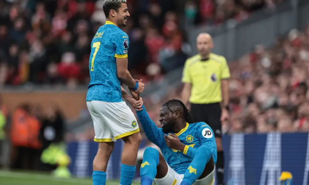 下半场易边再战。第49分钟,阿罗科达雷做球,黄喜灿禁区弧顶打门被防守球员阻挡。第51分钟,狼队扳回一分,安德烈左侧角球传中,阿罗科达雷头球攻门被阿利森扑出,圣地亚哥-布埃诺门前补射破门,1-2!这是他本赛季联赛第2球。