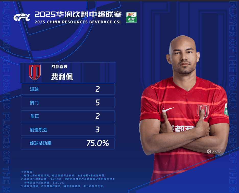 中超官方:费利佩当选本轮最佳 梅开二度助蓉城2-1泰山