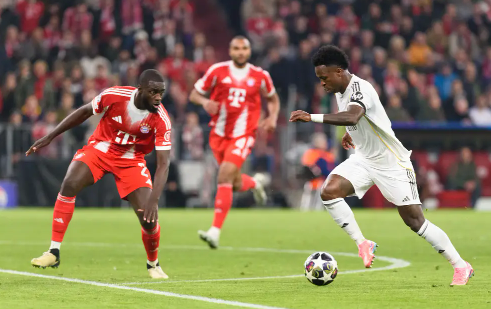 北京时间4月16日凌晨3:00,2025-26赛季欧冠1/4决赛次回合,拜仁慕尼黑在主场迎战皇家马德里,首回合拜仁客场2-1皇马占先机。上半场比赛,双方交替进球,居莱尔闪击+任意球破门完成梅开二度,帕夫洛维奇、凯恩先后扳平,姆巴佩中场前帮助皇马再次领先,半场皇马3-2领先拜仁,总比分4-4战平;下半场,替补登场的卡马文加两黄变一红被罚下,随后迪亚斯进球扳平,补时阶段奥利塞破门杀死比赛,最终拜仁4-3战胜皇马,总比分6-4晋级,将在半决赛对阵卫冕冠军巴黎圣日耳曼。赛后,皇马球员向裁判抗议,居莱尔染红。