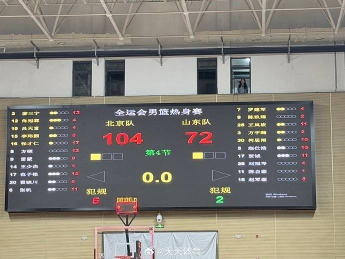 北京时间10月17日消息,在今天进行的全运会男篮热身赛中,北京队以104-72大胜山东队。