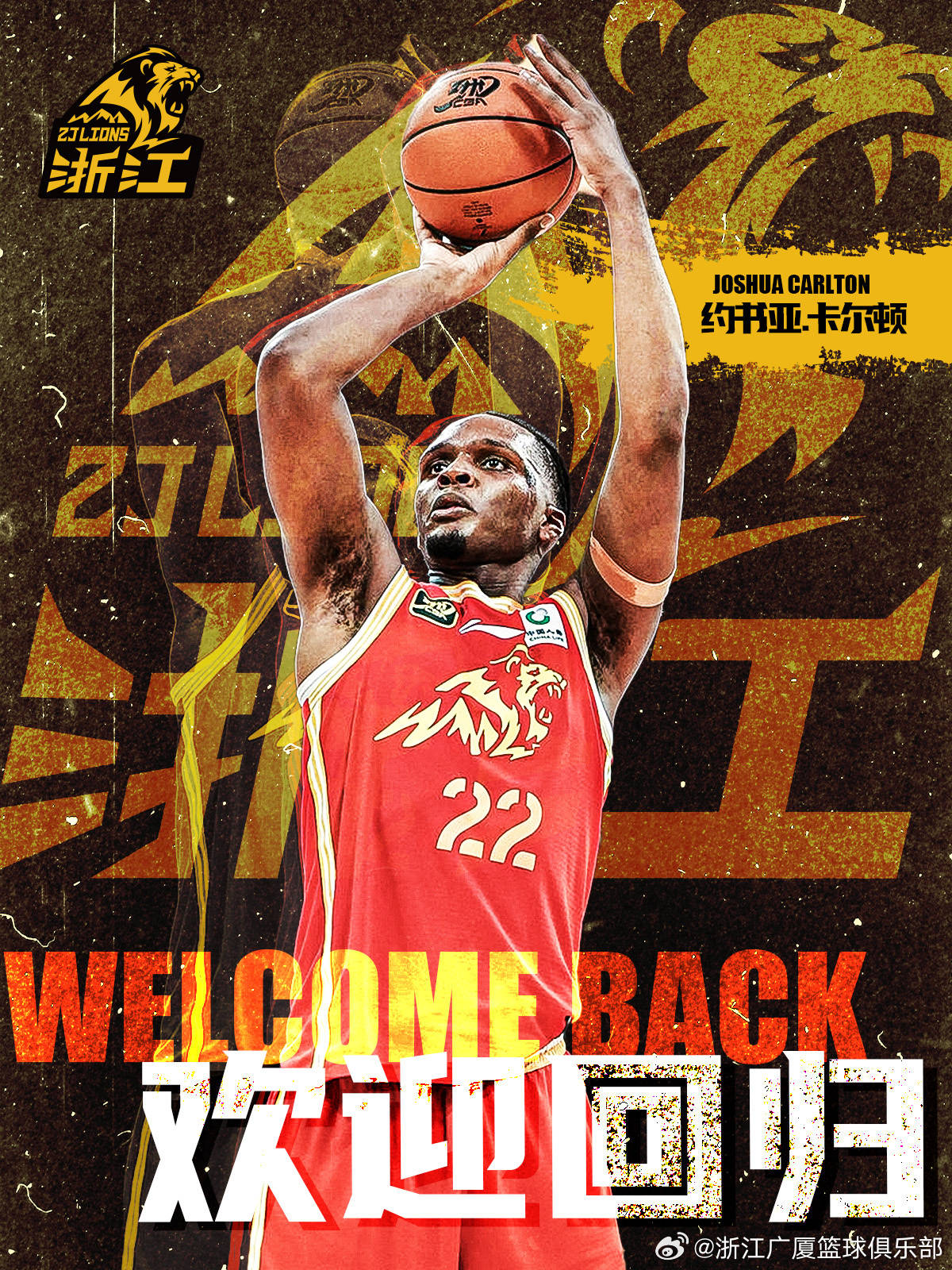 昨晚,卡尔顿已和家人顺利抵达杭州,欢迎卡尔顿归队!期待他在新赛季中继续发挥自身技术特点,与球队一起再创佳绩,为球迷朋友们贡献更多精彩比赛。