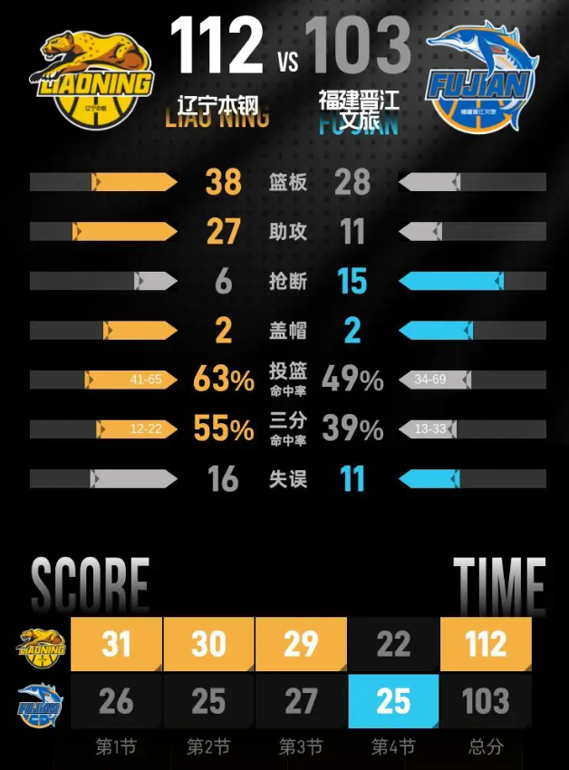 北京时间4月7日CBA常规赛第36轮,主场作战的辽宁本钢以112-103击败福建晋江文旅。赵继伟27分6篮板8助攻,昆汀·皮特森44分4篮板2助攻。