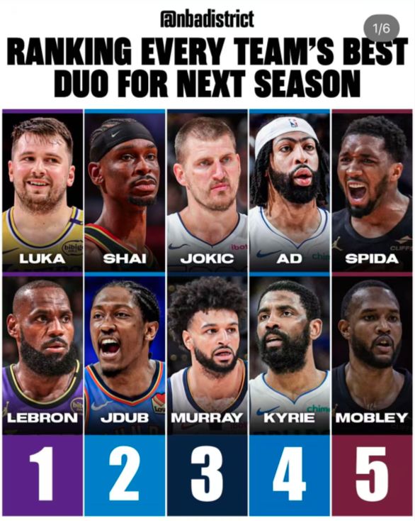 北京时间9月18日,美国媒体NBA district为联盟30支球队(25-26赛季)的二人组进行了排名,换言之也评选出了联盟最强的二人组,洛杉矶湖人队的詹姆斯+东契奇被评选为最强二人组。