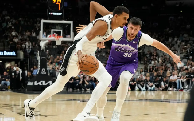 第二节,马刺继续显示出强大的进攻火力,逐步将领先优势扩大至17分。尽管爵士在比赛后段努力寻求反击,但马刺表现稳定,防守严密,始终控制比赛节奏。本节中,文班亚马再次发挥出色,为球队贡献12分。半场结束时,马刺以72-55领先爵士。