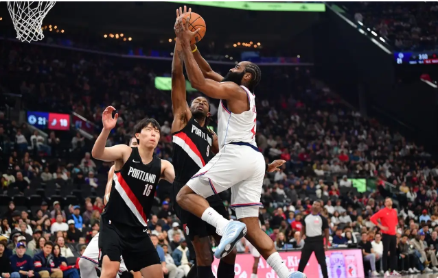 快船114-107胜开拓者 杨瀚森连3场2分1板哈登20+13