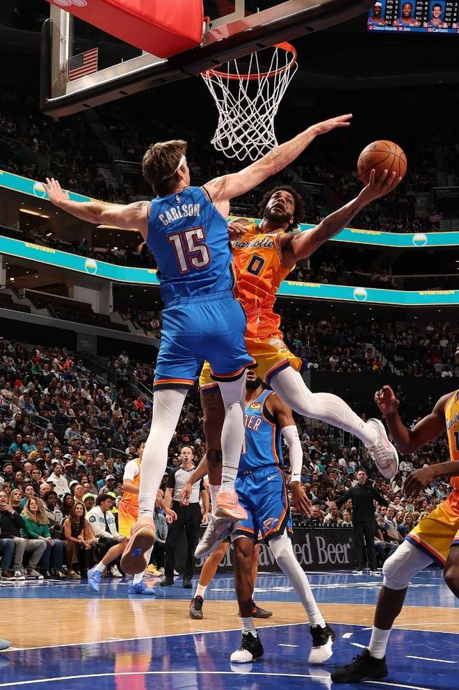 北京时间11月16日,NBA常规赛卫冕冠军雷霆客场对阵黄蜂,其中黄蜂是背靠背第二场,三球轮休缺席。亚历山大三节轰下33分7助攻提前打卡,雷霆持续压制黄蜂逐步扩大20+优势,并且挡住黄蜂的顽强追分,最终雷霆109-96战胜黄蜂豪取5连胜,雷霆新赛季13胜1负高居联盟第一领跑,黄蜂遭遇2连败。