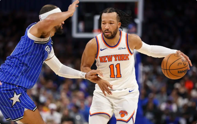 尼克斯队首发:杰伦-布伦森、卡尔-安东尼-唐斯、米卡尔-布里奇斯、米切尔-罗宾逊、兰德里-沙梅特