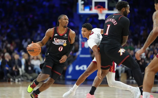 76人队首发:泰瑞斯-马克西、昆汀-格兰姆斯、安德烈-德拉蒙德、保罗-乔治、贾斯汀-爱德华兹