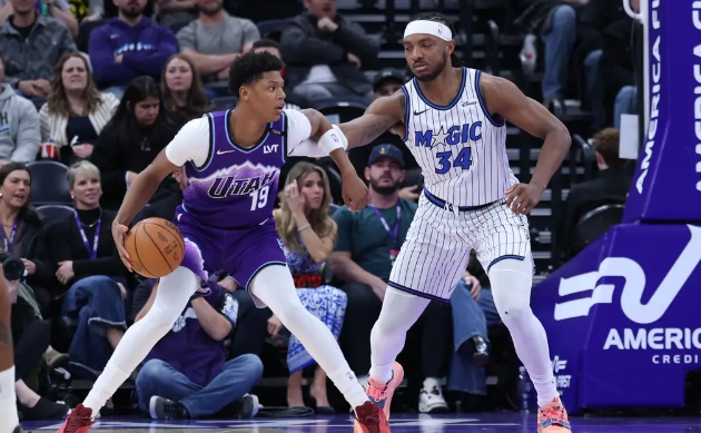 爵士队首发:基扬特-乔治、斯维亚托斯拉夫-米哈伊柳克、埃斯-贝利、凯尔-菲利波夫斯基、尤素福-努尔基奇