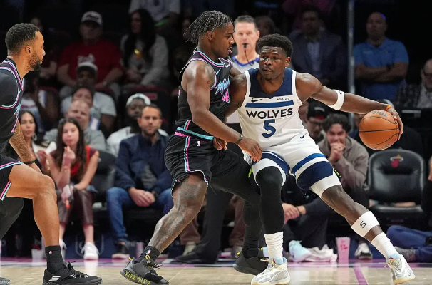 第一节,比赛一开始,热火迅速展开攻势,以5-2取得领先。随后,森林狼表现强劲,不仅扭转了局势,还在领先热火10分。进入小节后段,热火开始缩小分差。此节中,森林狼的爱德华兹表现出色,独得14分,其中包括2记三分球。第一节结束时,森林狼以27-25领先。