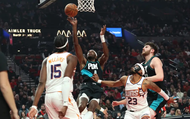 第二节,开拓者继续保持良好的竞技状态,开局便展开猛烈攻势,将领先优势扩大至14分。随着比赛的深入,太阳队逐渐寻找到进攻节奏,开始反击,将分差缩小至3分。然而,开拓者在节中保持稳定的进攻表现,再次拉开了比分差距。经过第二节的激战,开拓者以72-67继续领先。