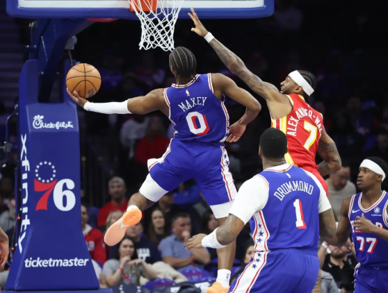 76人队首发:泰瑞斯-马克西、VJ-埃奇库姆、凯利-乌布雷、安德烈-德拉蒙德、多米尼克-巴洛